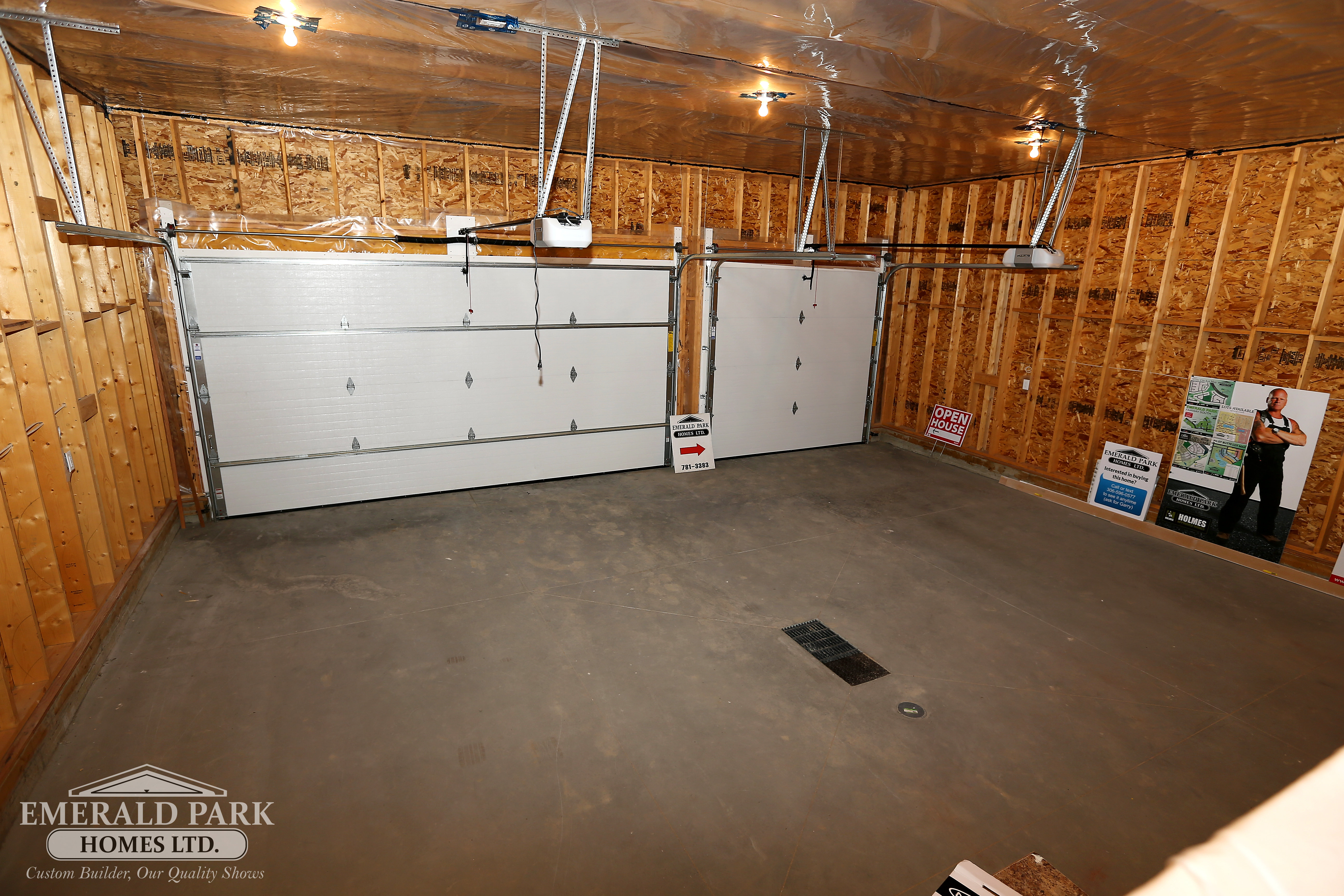 19 Emerald Hill Dr. show home for sale by emerald park homes white city walk out bungalow over sized three car vehicle garage