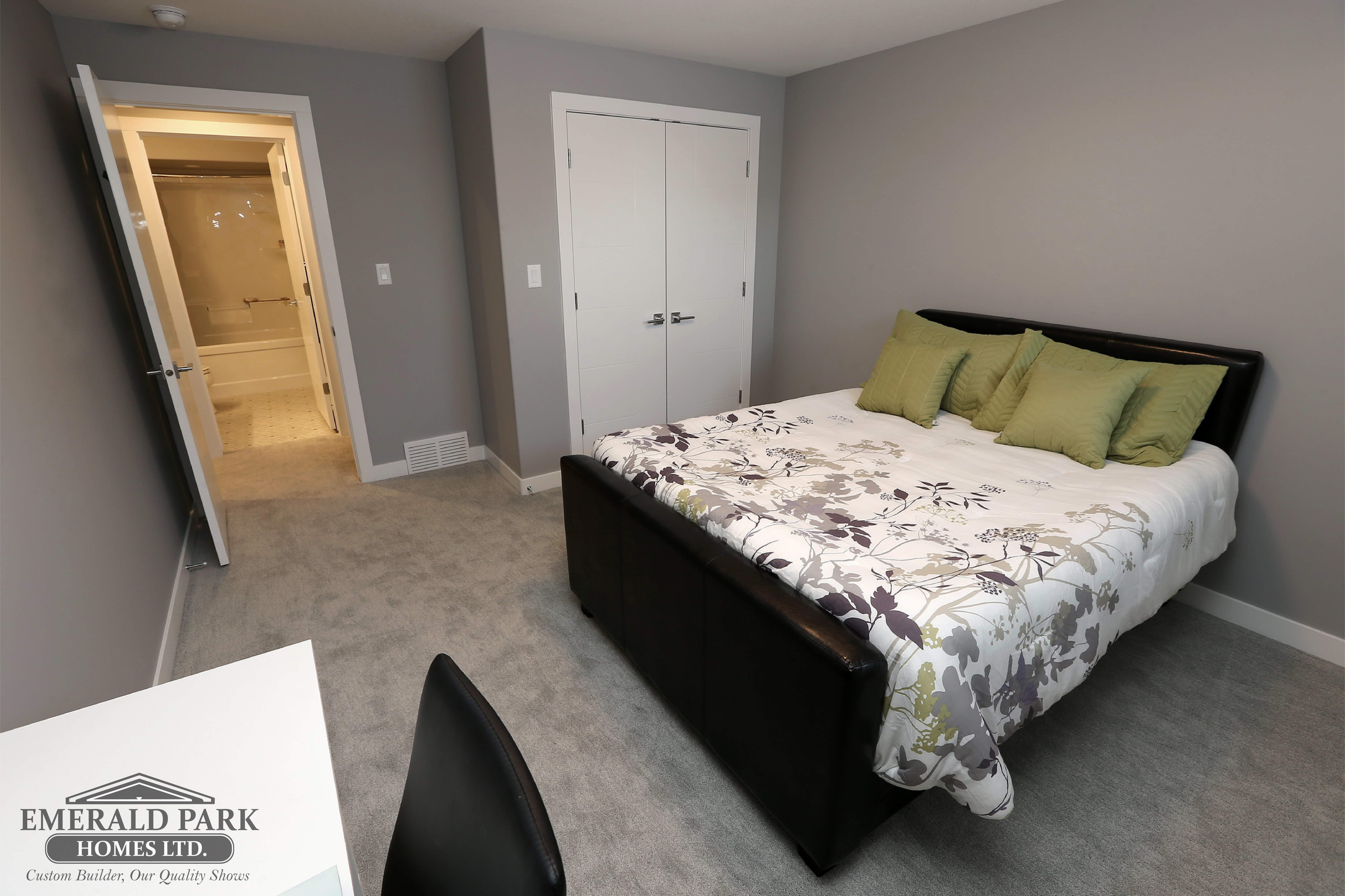 4414 Wolf Willow Pl – emerald park homes show home – basement bedroom spacious desk big window4