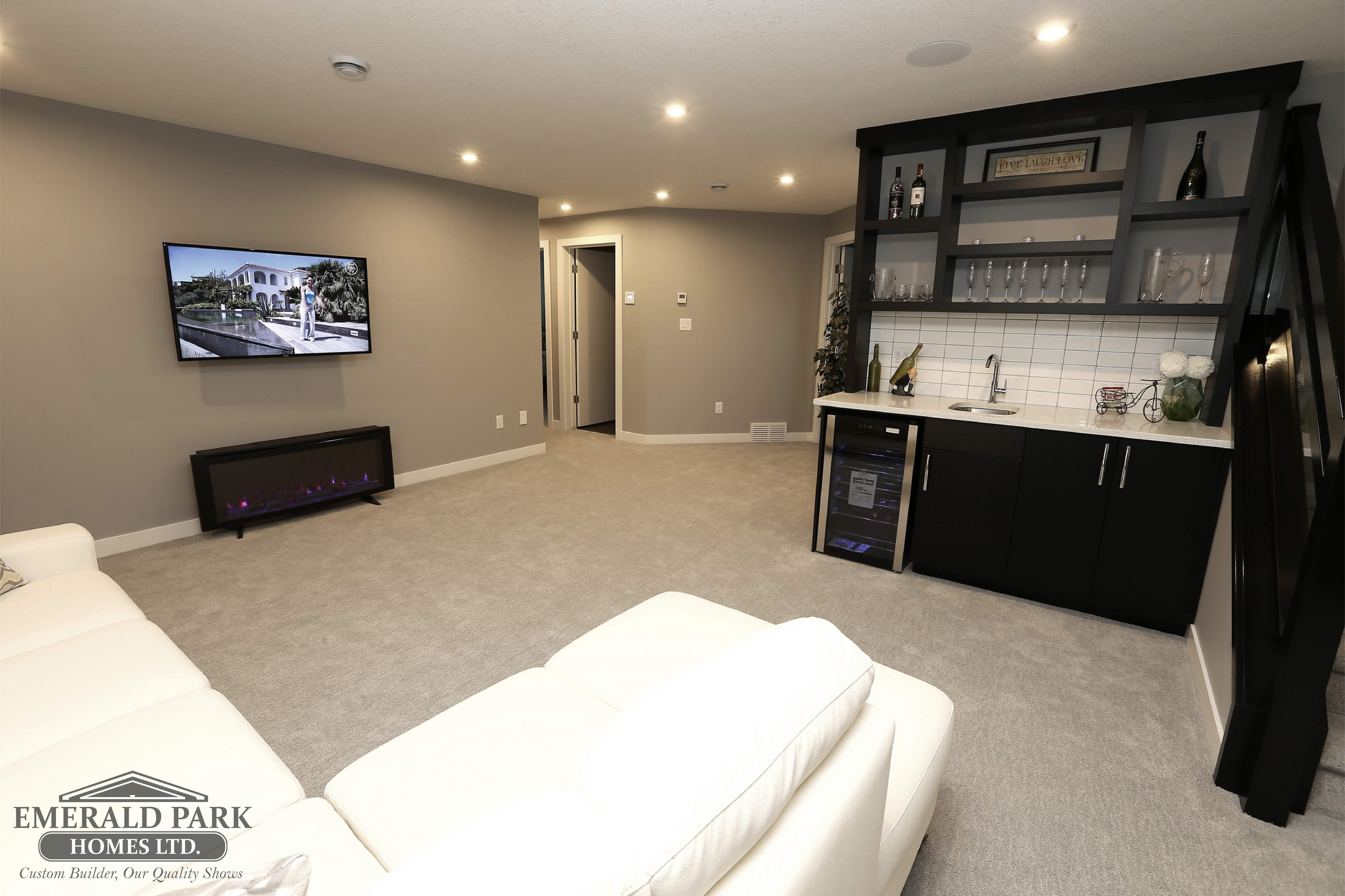 4414 Wolf Willow Pl – emerald park homes show home – basement family room open concept with wet bar3